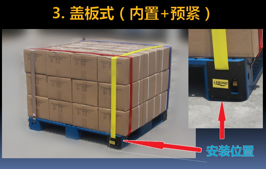 ● The binding strap can be automatically rolled after use, hidden inside the tray, not exposed, and will not affect storage and forklift use.